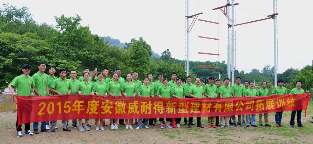拓有限人生,展無限未來!2015年6月7号,安徽省詠梅新型建材有限公司在蚌埠禾泉農莊對(duì)新員工進(jìn)行拓展培訓。 7号上午7點30,全體新員工按計劃在禾泉