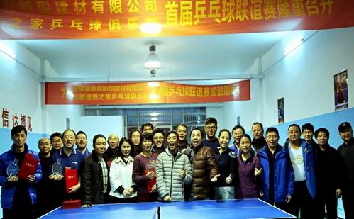 2015年元月2日下午1時,迎著(zhe)新年的驕陽,由我公司冠名贊助的“安徽省詠梅新型建材有限公司-合肥淩悅之家乒乓球俱樂部首屆乒乓球聯誼賽”盛大舉行